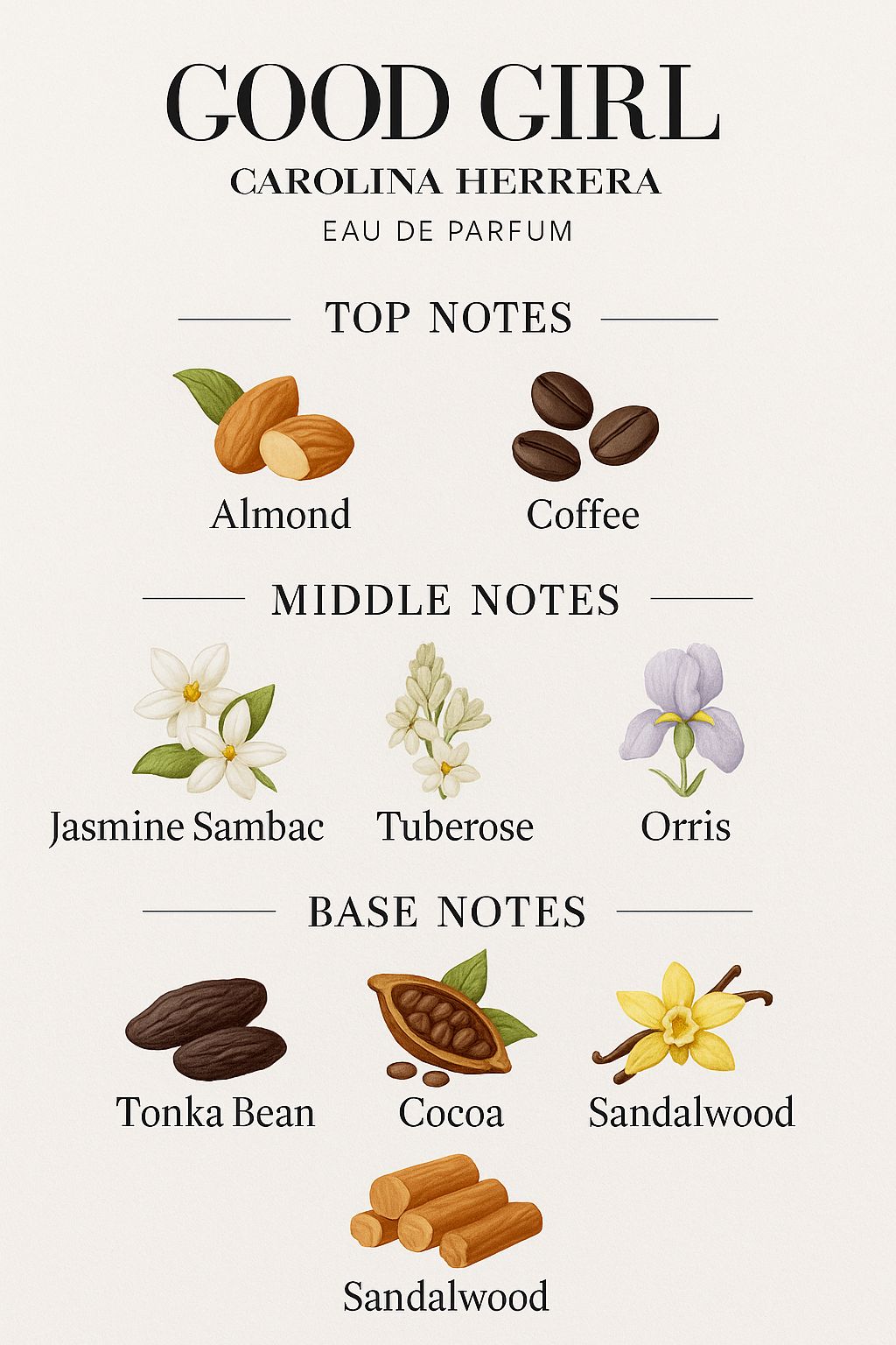 Perfume Bella – Good Girl Inspired is a seductive and sophisticated fragrance for the modern woman who’s powerful, confident, yet irresistibly feminine. With a unique contrast of bright florals and deep gourmand warmth, this perfume balances “good” and “bad” in one iconic scent.